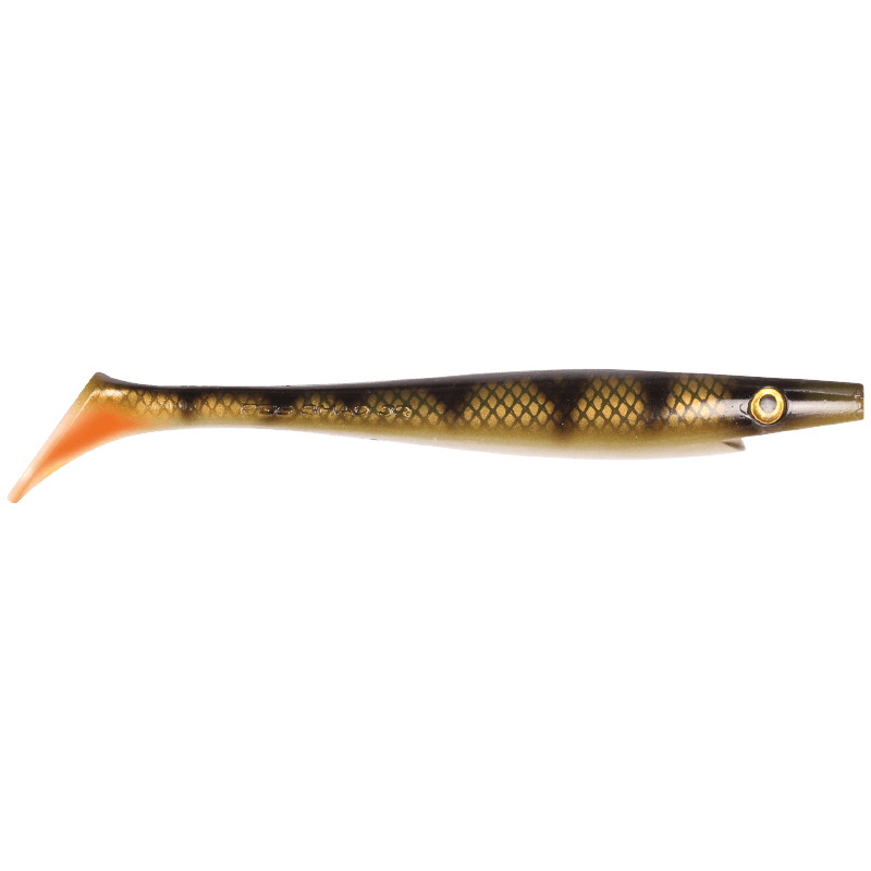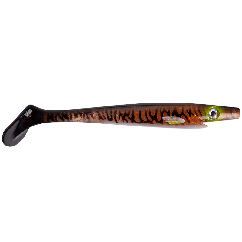 The Giant Pig Shad is a soft plastic shad inspired by the classic jerkbait The Pig. With his seductive rolling action while the head is slightly rocking from side to side. The tail paddles and twists in a low frequent rate. A perfect imitation of an injured baitfish that slowly trudges forward with its last strengths!