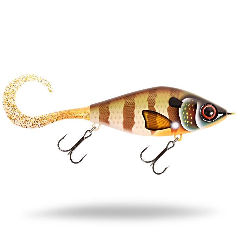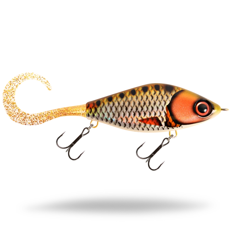 The Guppie features an innovative spring screw at the tail of the bait. Change the dynamics of the bait simply by screwing on or off one of the optional tail types.